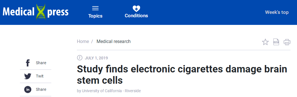 Medical Press:研究發(fā)現(xiàn)電子香煙會損害腦干細(xì)胞