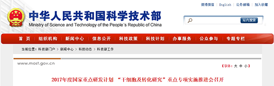 2017年度國(guó)家重點(diǎn)研發(fā)計(jì)劃 “干細(xì)胞及轉(zhuǎn)化研究”重點(diǎn)專(zhuān)項(xiàng)實(shí)施推進(jìn)…